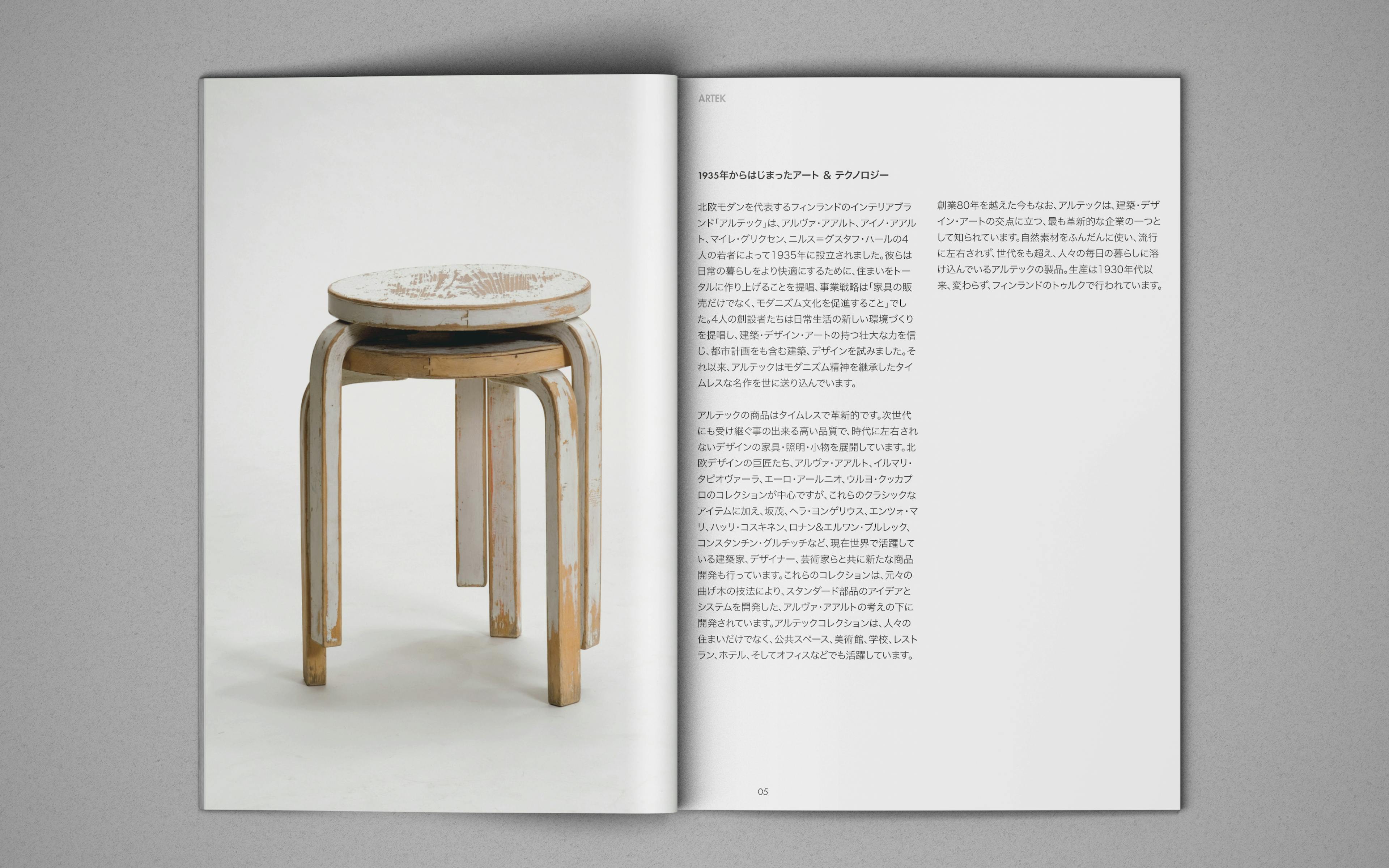 I’ve provided a wide range of design services for Artek over a number of years. I believe the best outcomes come through building sustainable relationships (with the clients, colleagues and suppliers). Understanding and appreciating Artek’s existing brand values means I’m well placed to bring to life its product development strategy of ethics, aesthetics and ecology across all its printed communications.