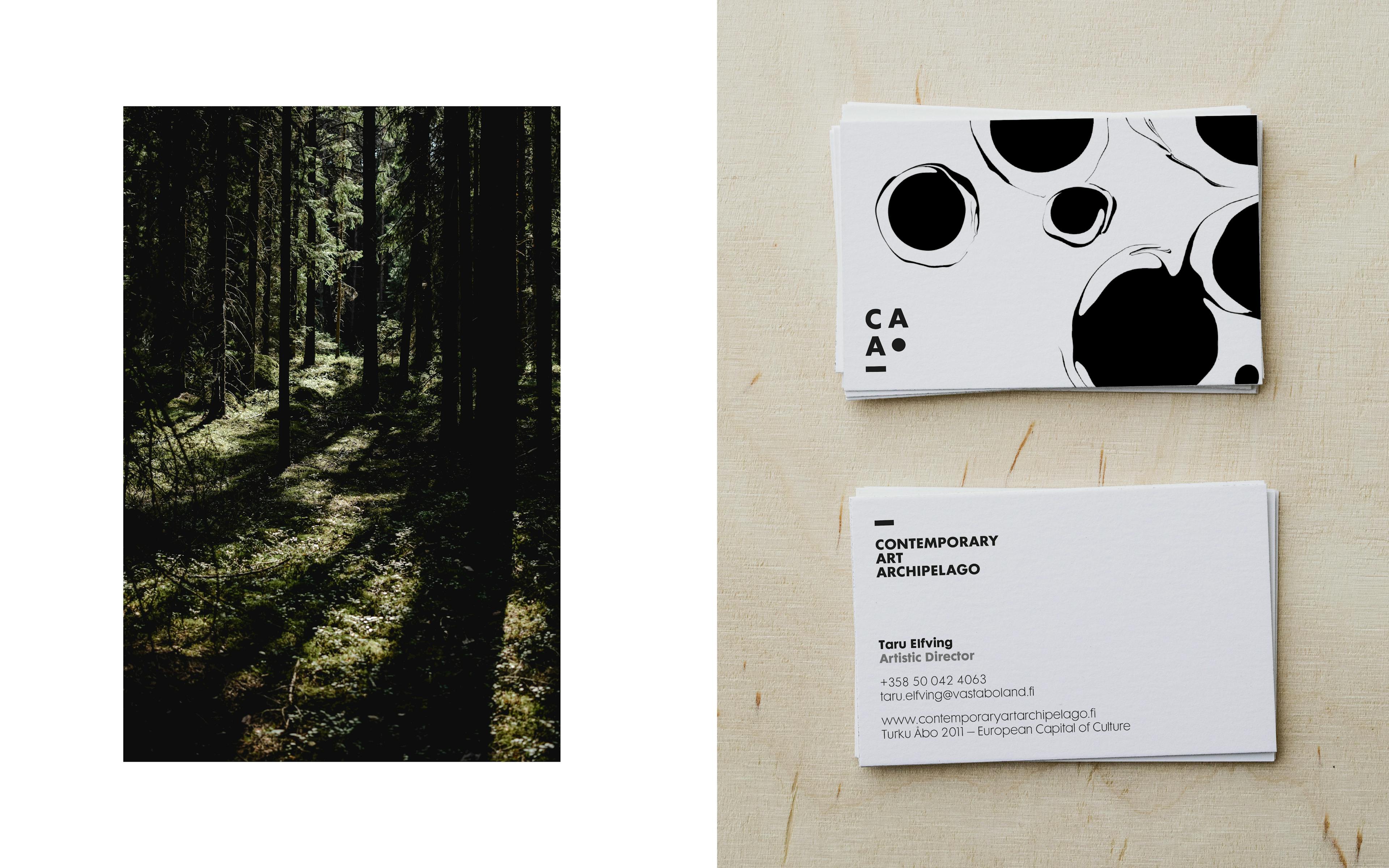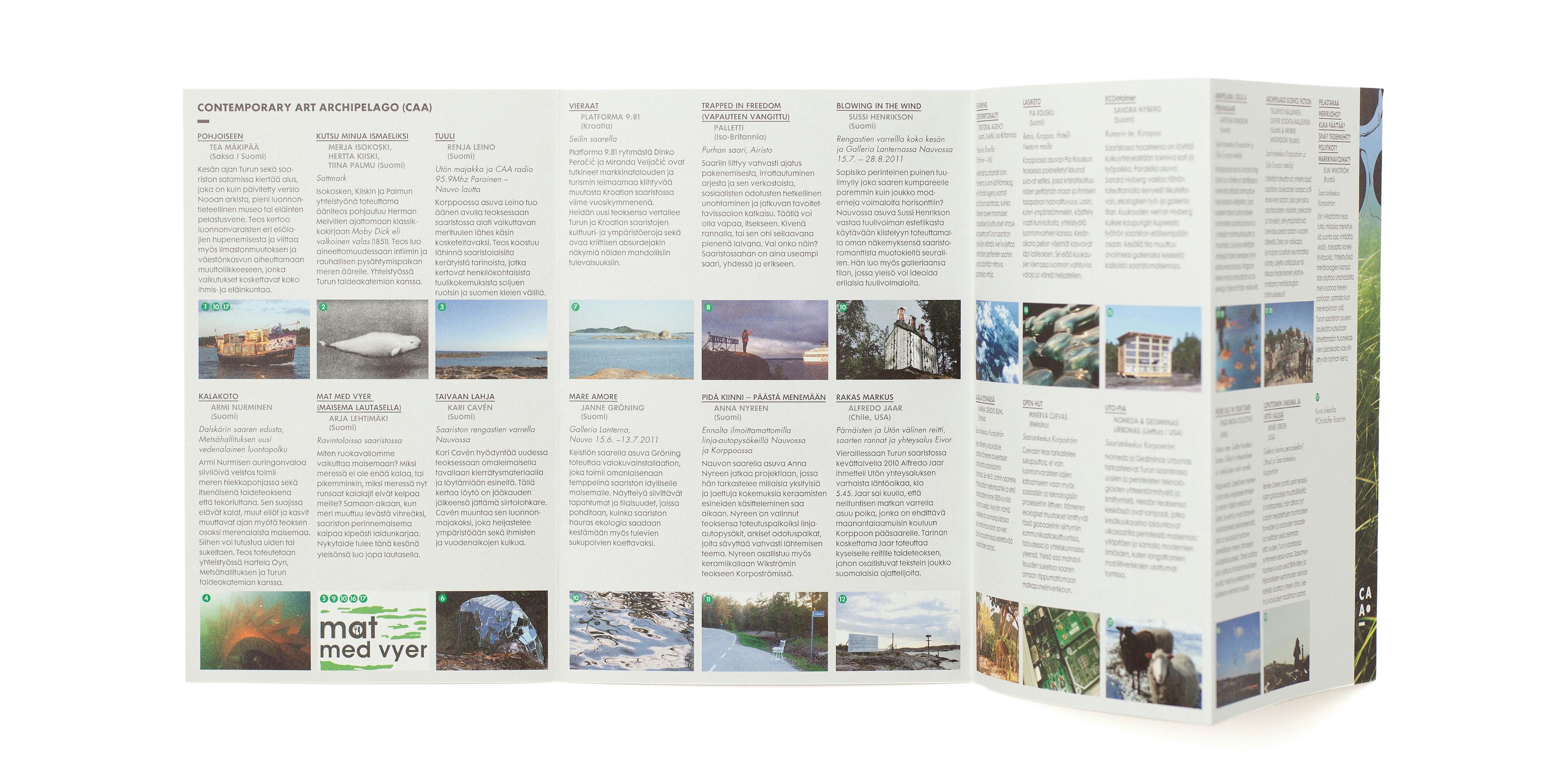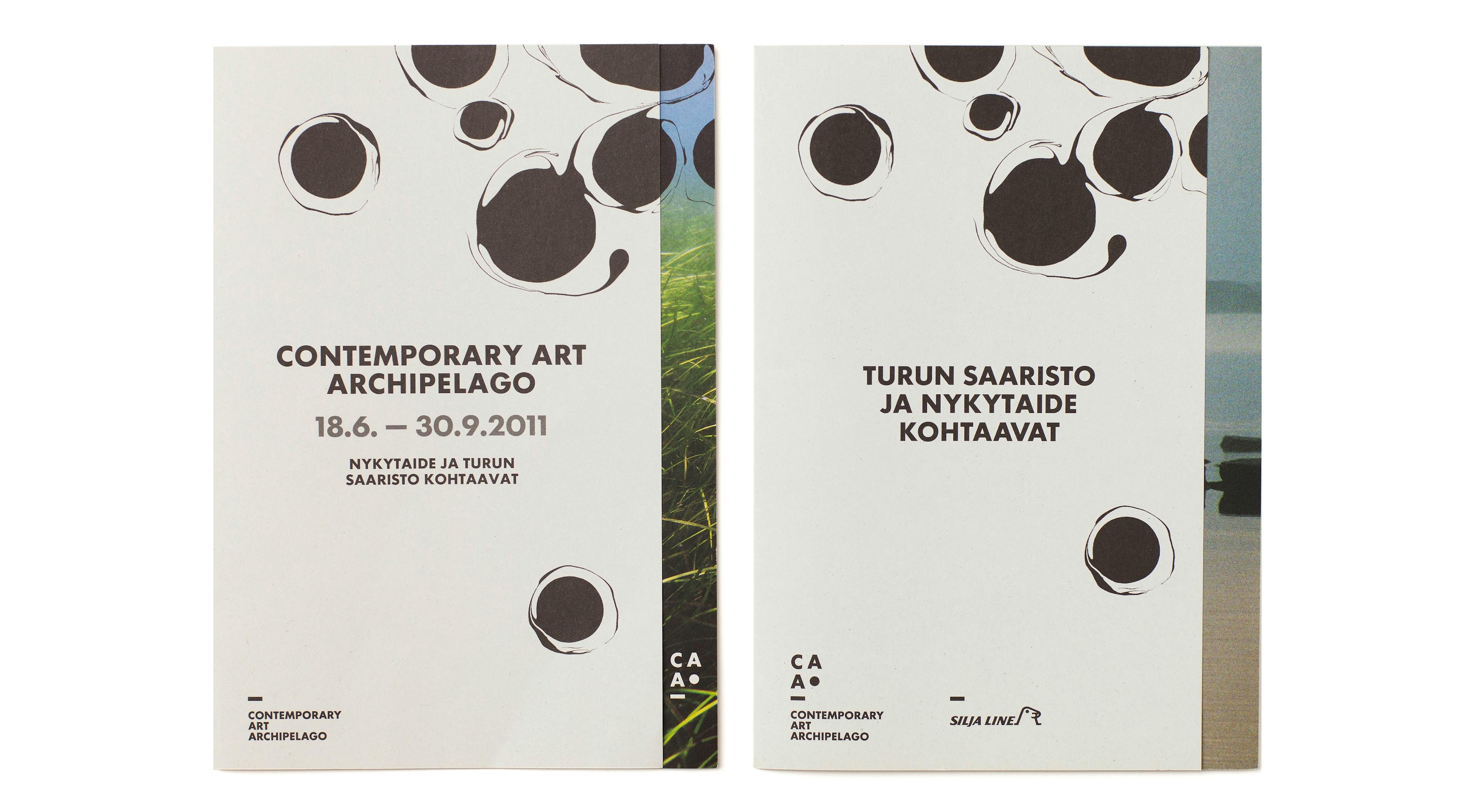 I created the overall identity and graphics for CAA. The identity concept is about art interweaving with the archipelago. We used sustainable design methods throughout the production, minimising wastage, and incorporating materials such as recycled paper and wood that resonate with the natural environment.