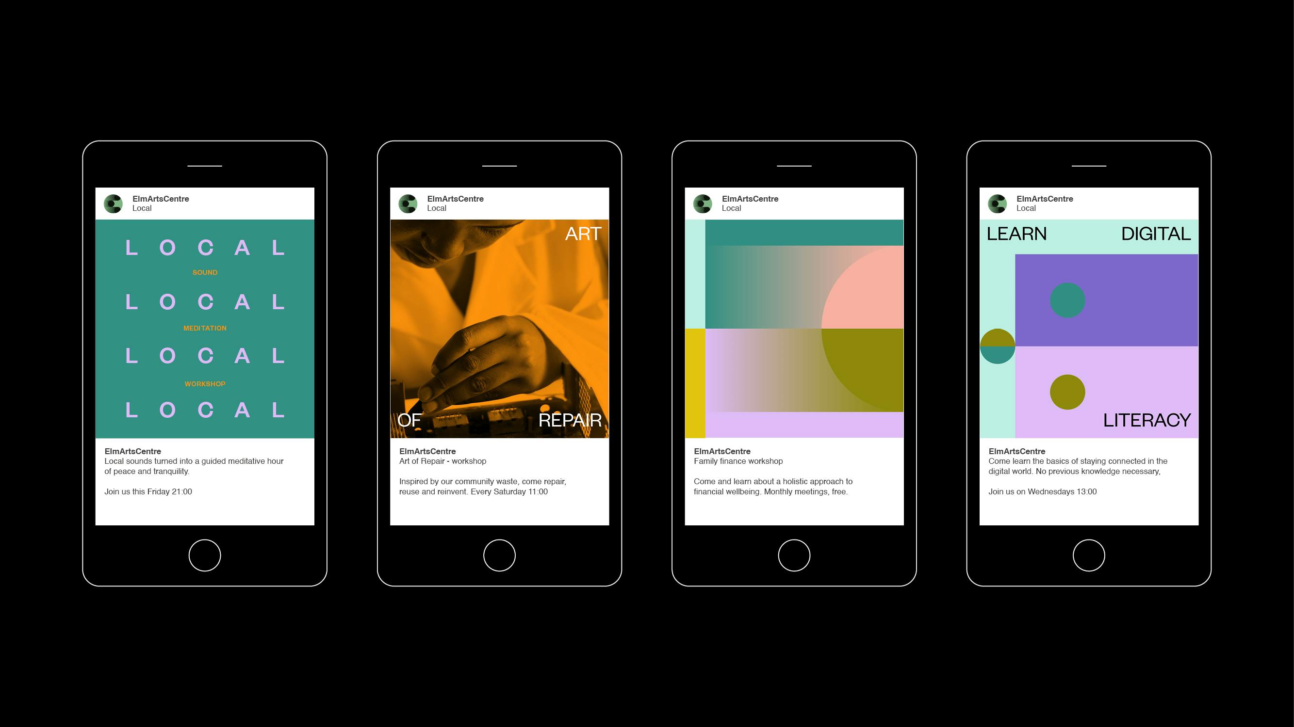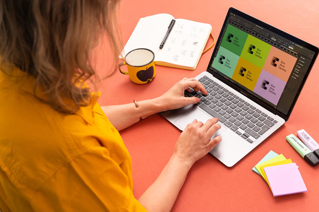 Together, we'll create a visual identity for a client. I'll take you through my design process by sharing each step of creating the identity for Elm Arts Centre.