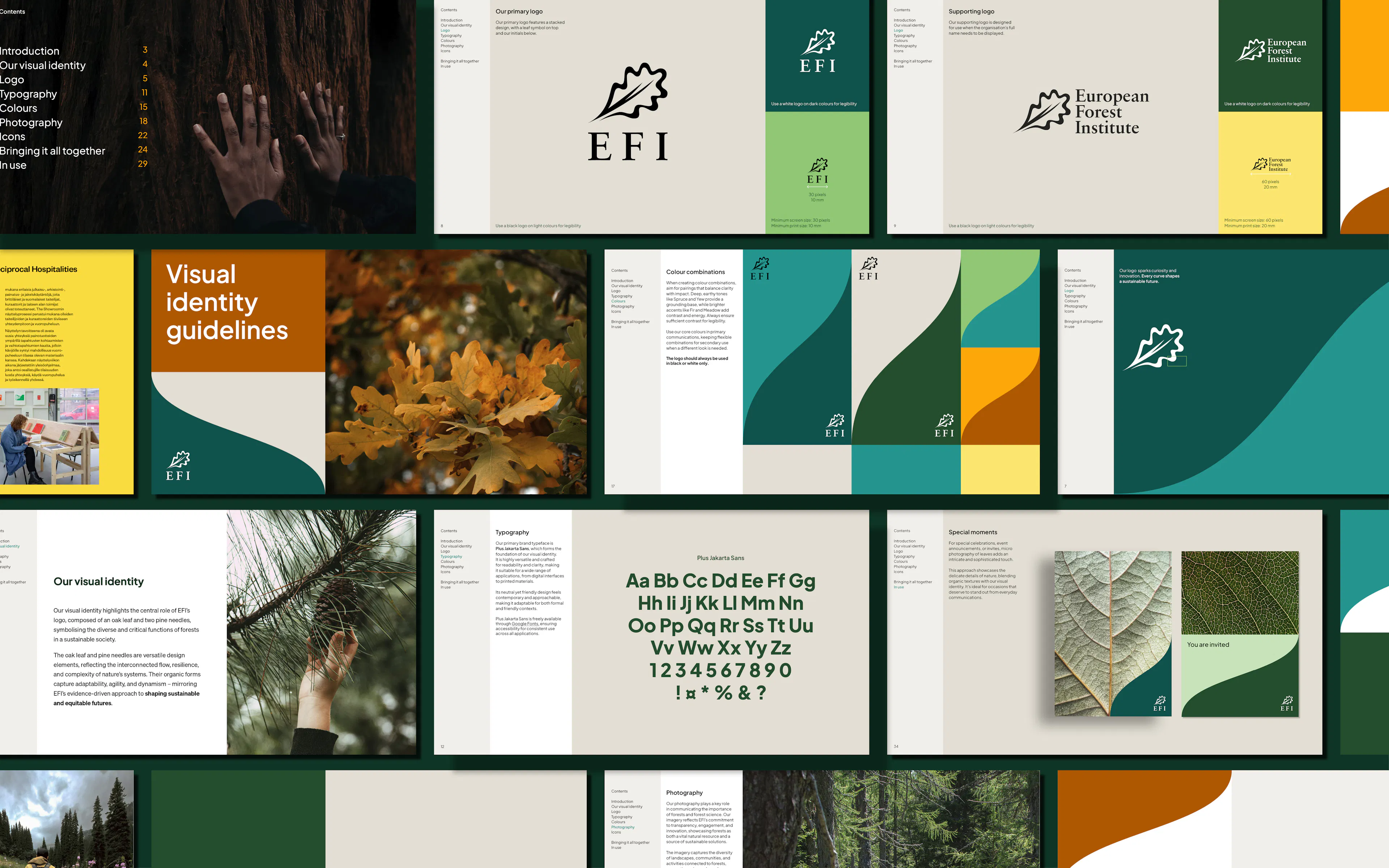 If you want ideas to grow, share them. That thought shaped my work for the European Forest Institute, where the visual identity process was opened up across the organisation rather than kept behind closed doors. EFI’s own communications strategy talks about engagement and knowledge sharing as core to how it works, and the brief emphasised transparency and innovation too.