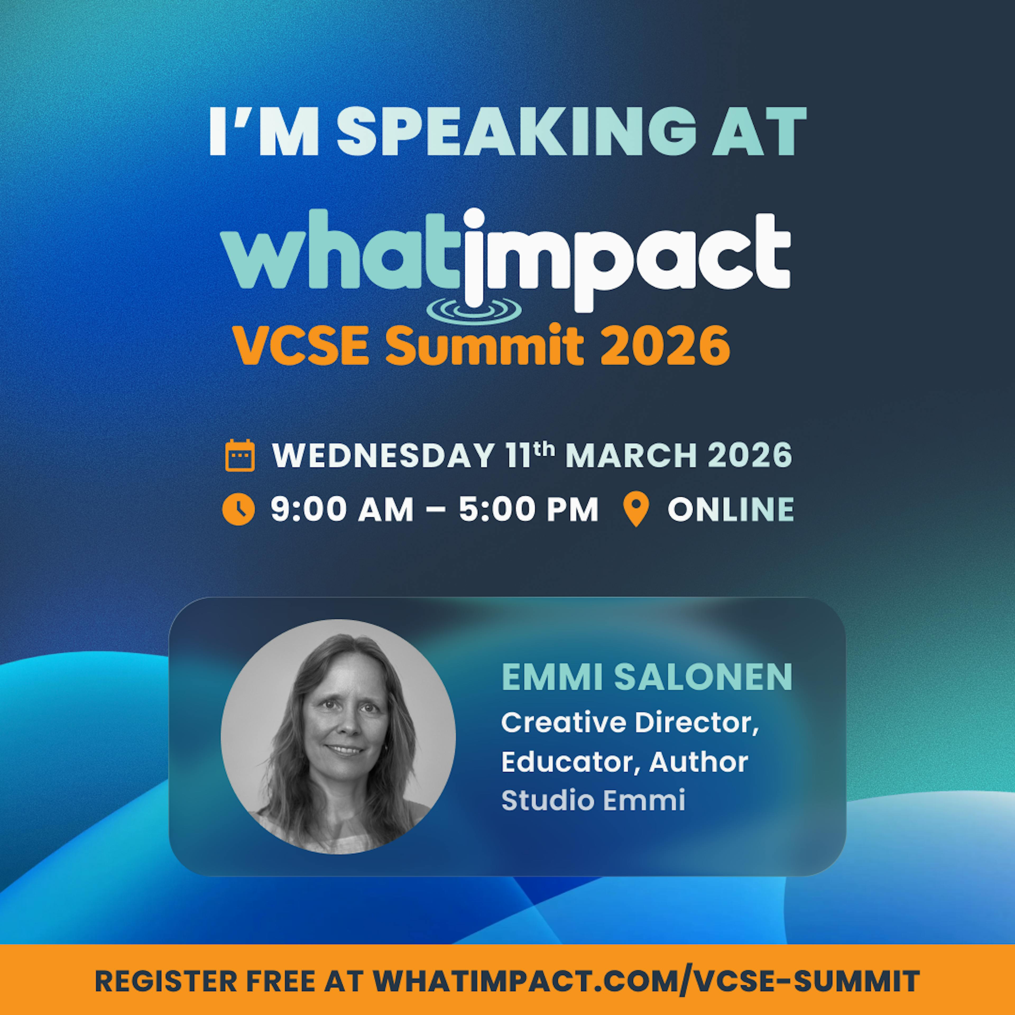 I'm speaking at the whatimpact VCSE Summit on 11 March. A free, virtual event, bringing together 1,000+ VCSE organisations to share honest insight and practical support across the sector. If leadership has felt heavy lately, this session is designed to create space, not add more load.