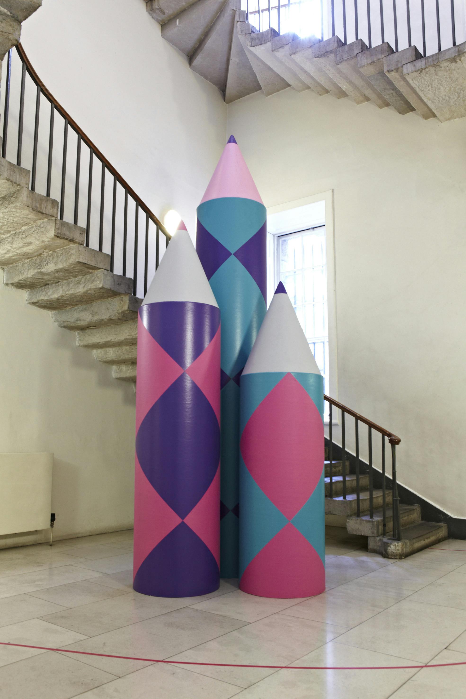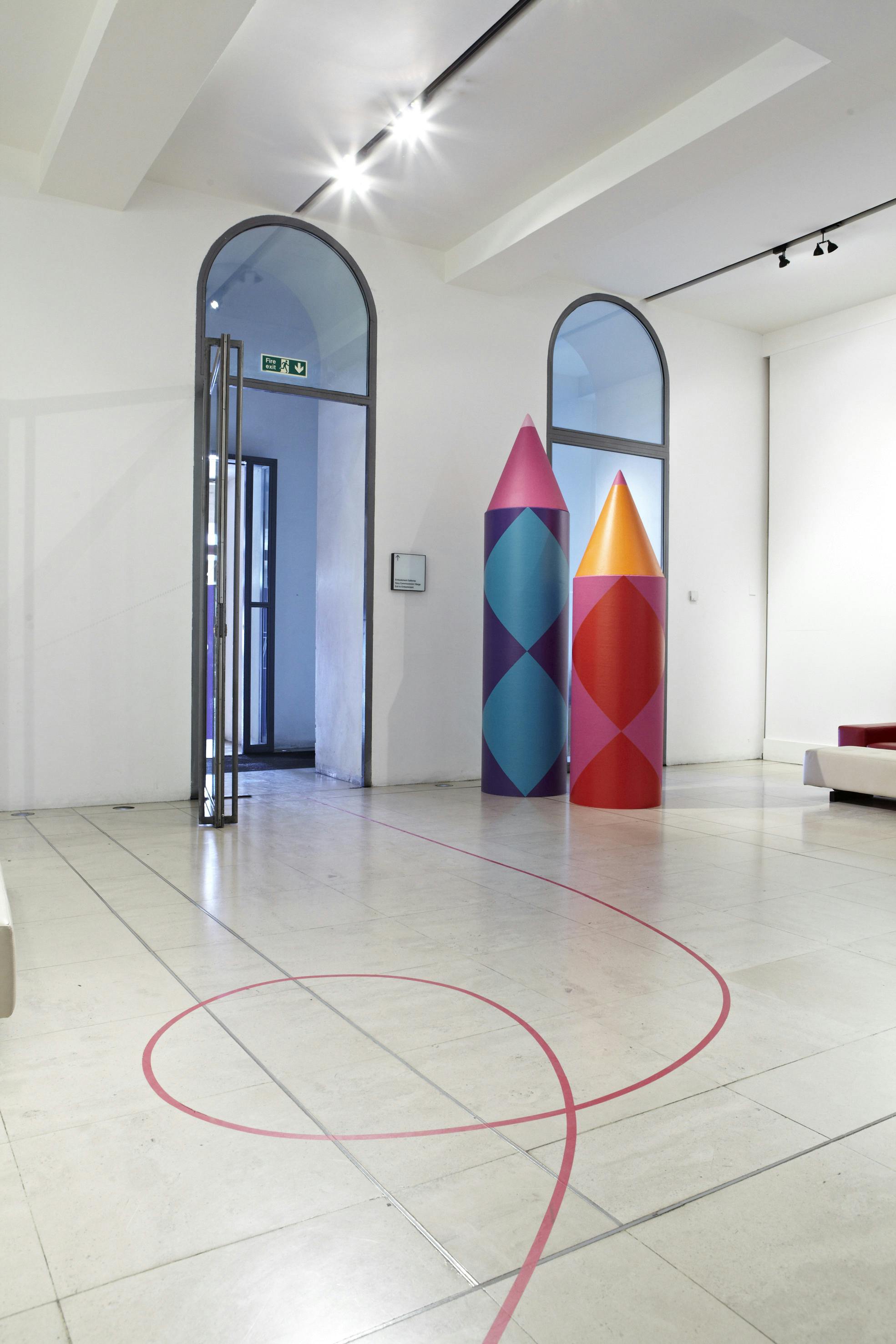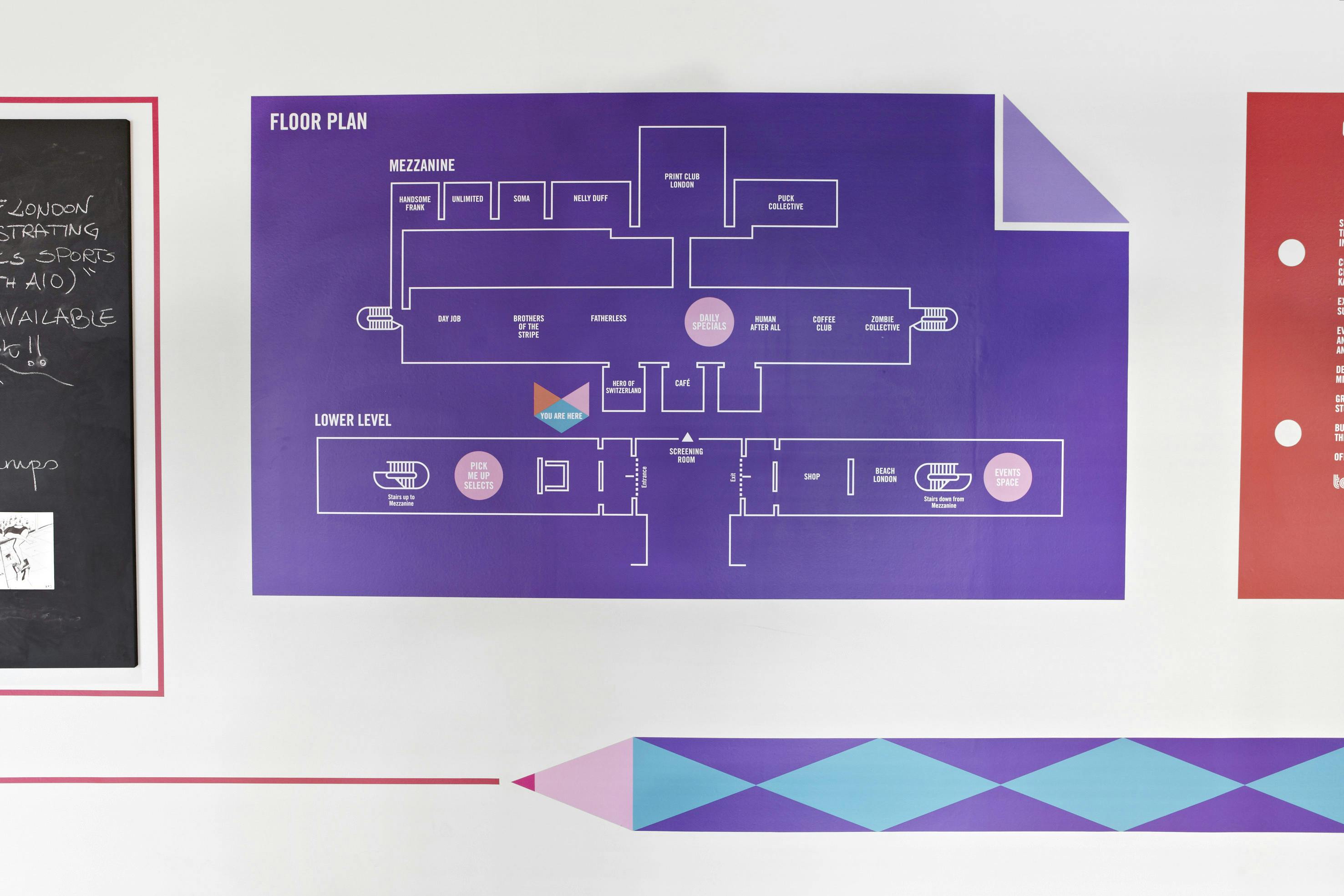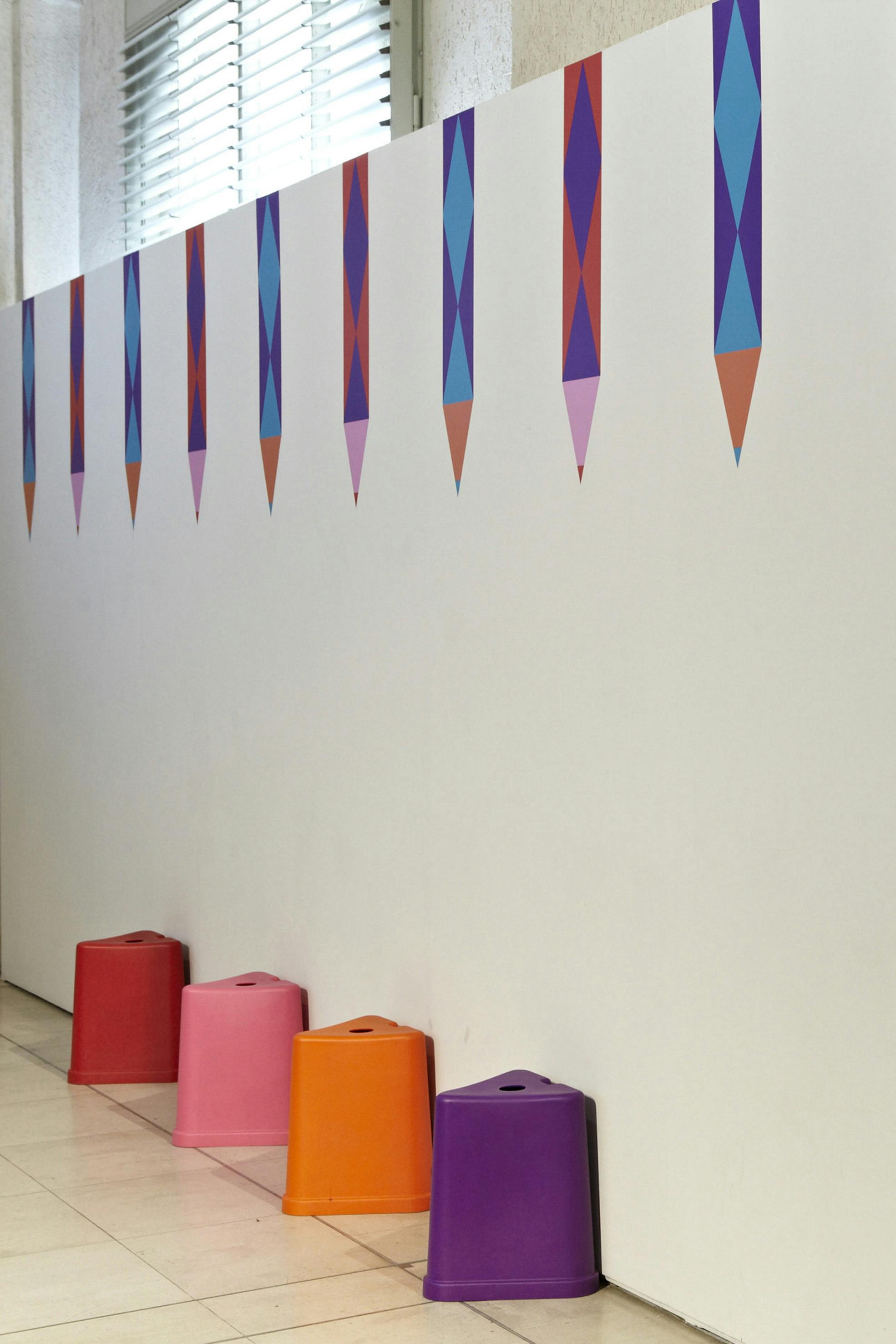 With such a large event located in multiple levels, visitors needed pointing in the right direction. A giant 3D pencil device worked as a directional element, picking up on the ‘graphic’ arts theme. The identity also featured a diamond pattern, which evolved from the point at the end of the pencil to give the graphics a directional quality.