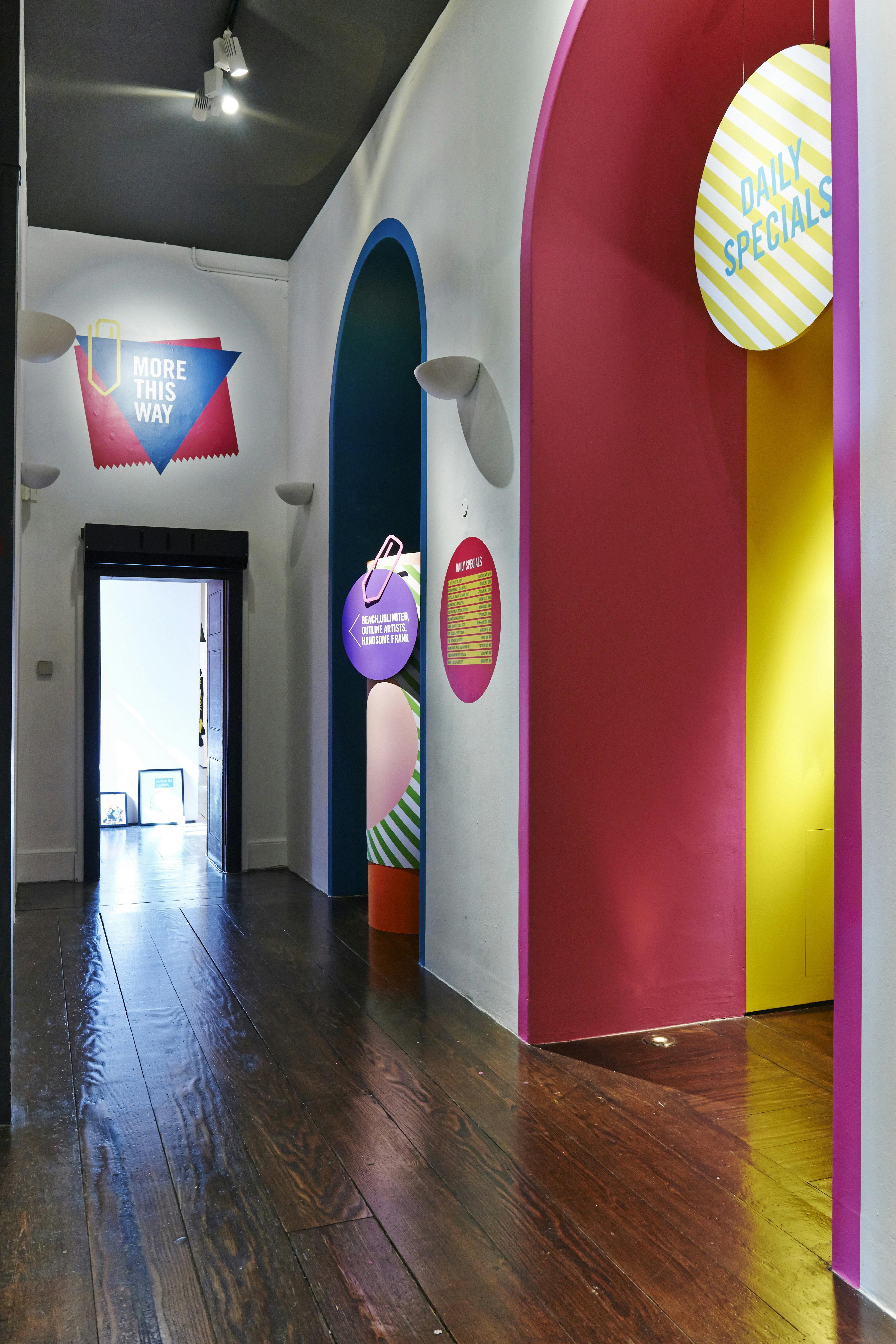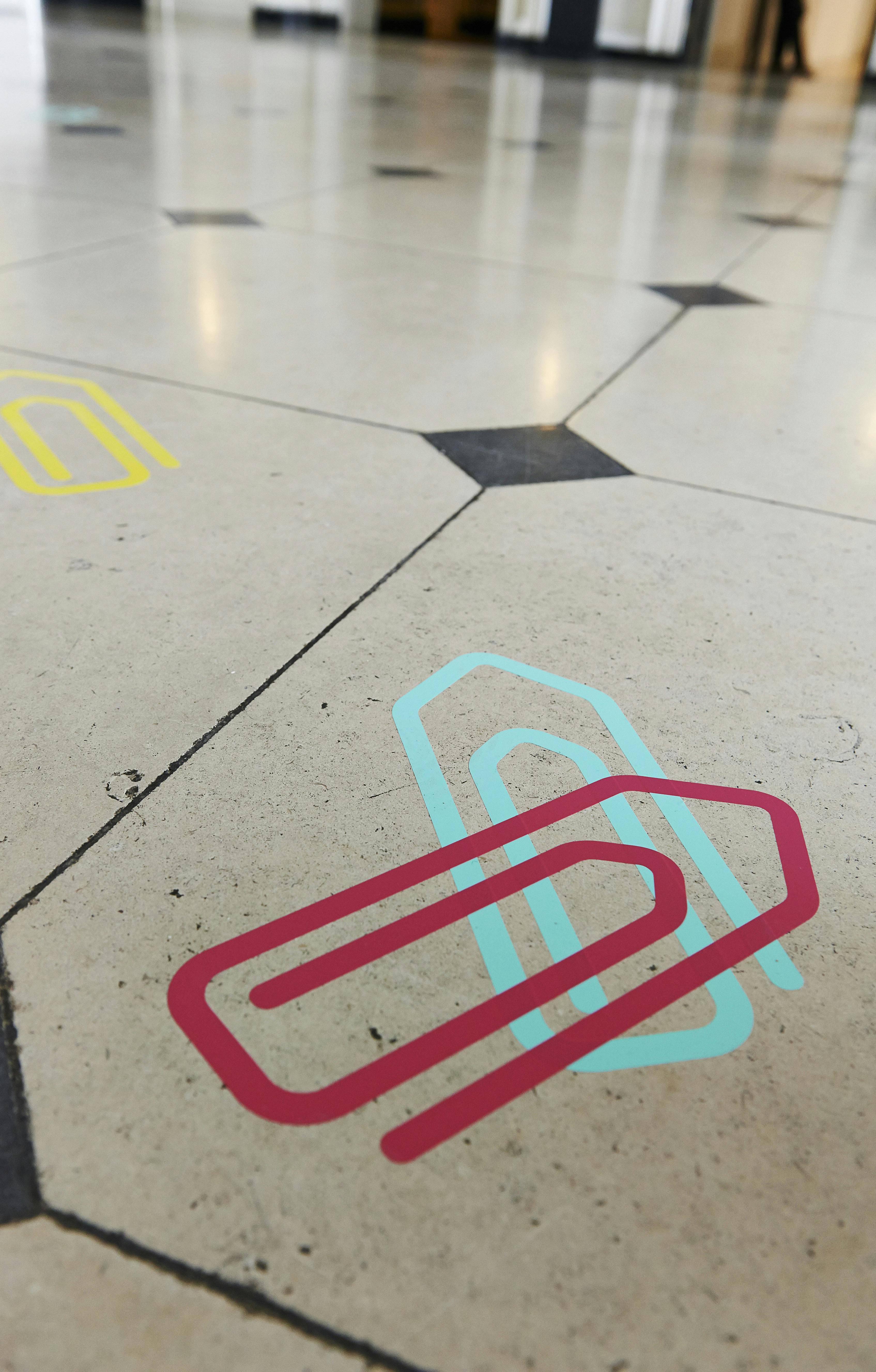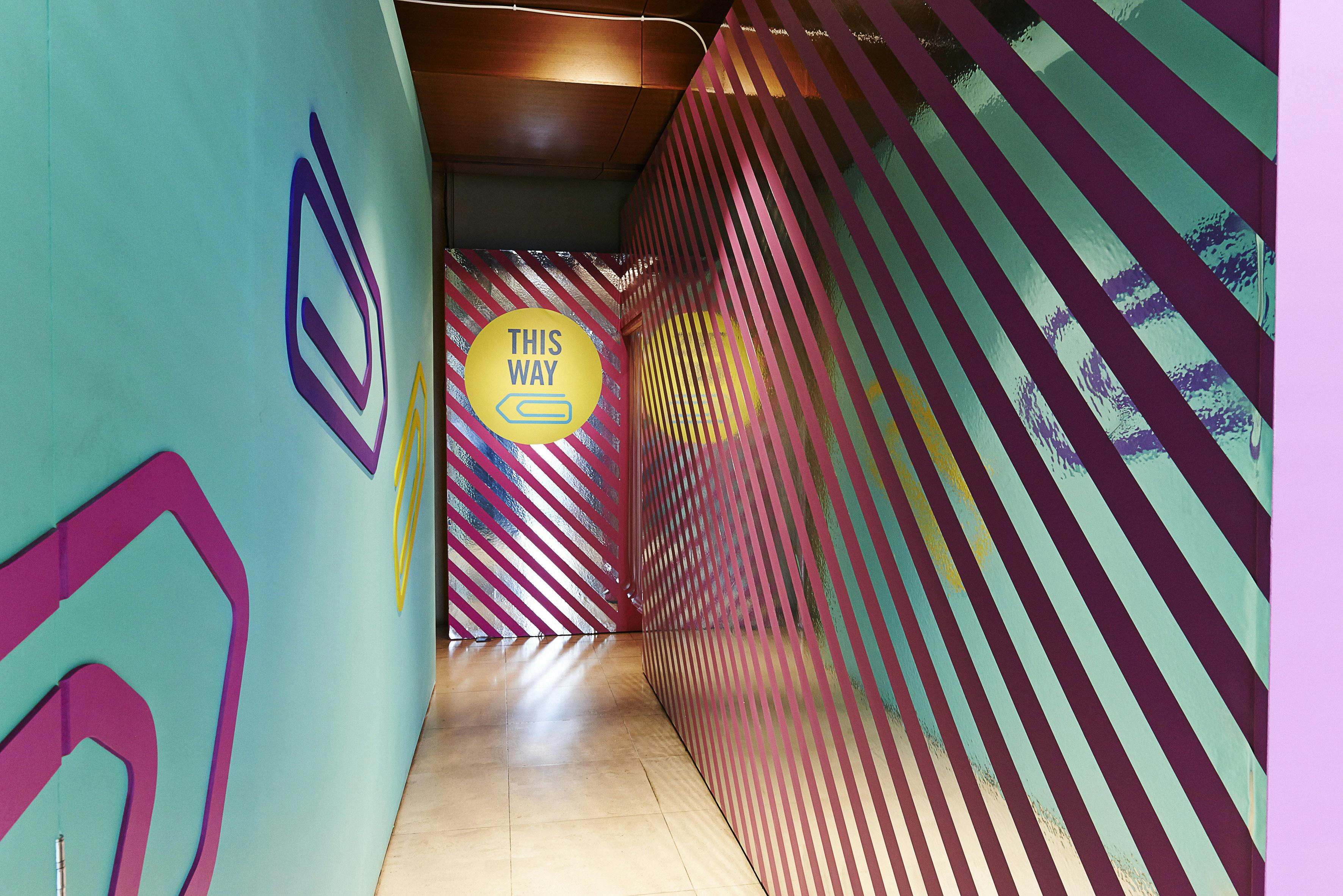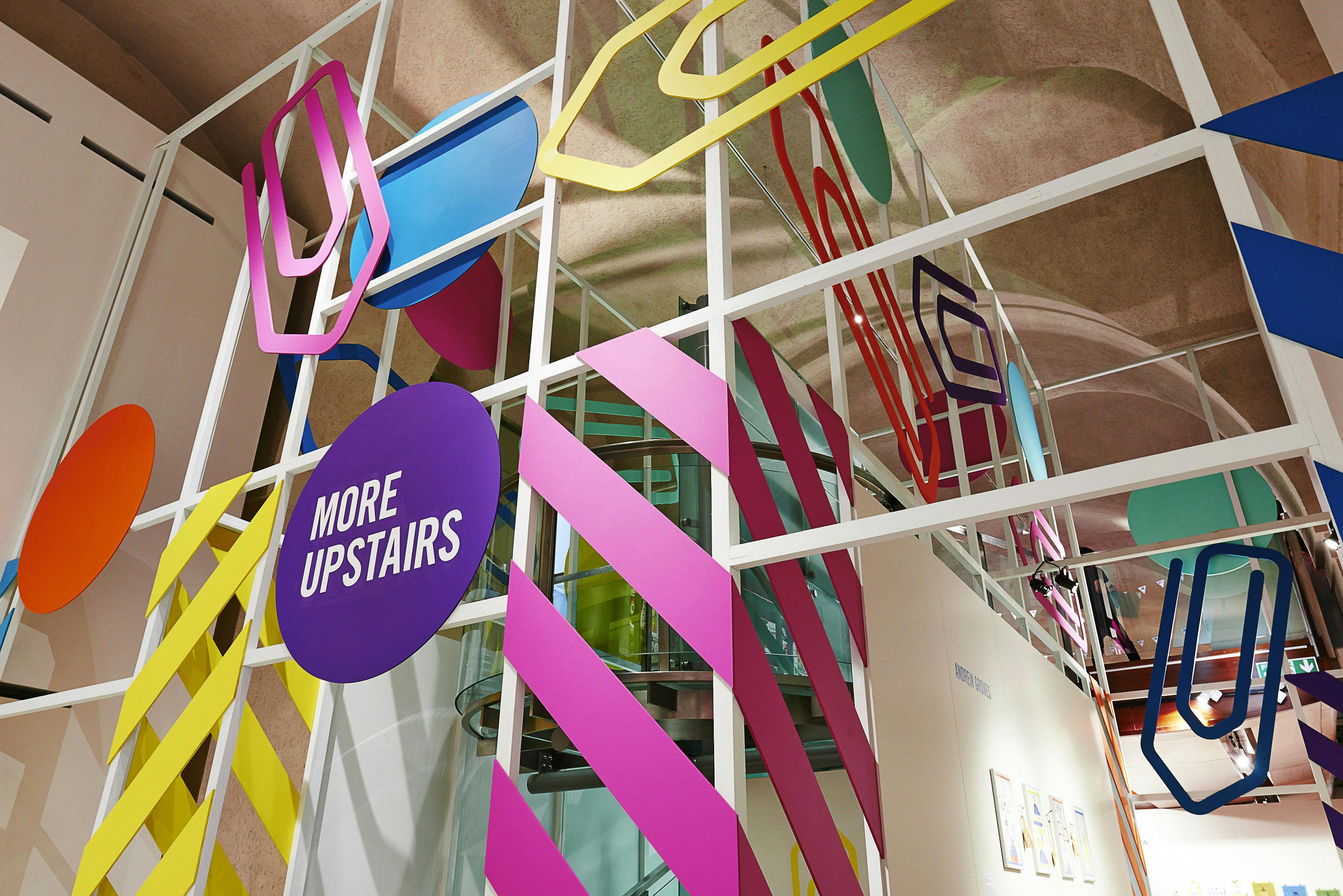 With such a large show located in multiple levels, visitors needed pointing in the right direction. A giant paperclip device worked as a pointing element, picking up on the ‘graphic’ arts theme. The identity also featured a diamond pattern, which evolved from the point at the end of the pencil to give the graphics a directional quality.